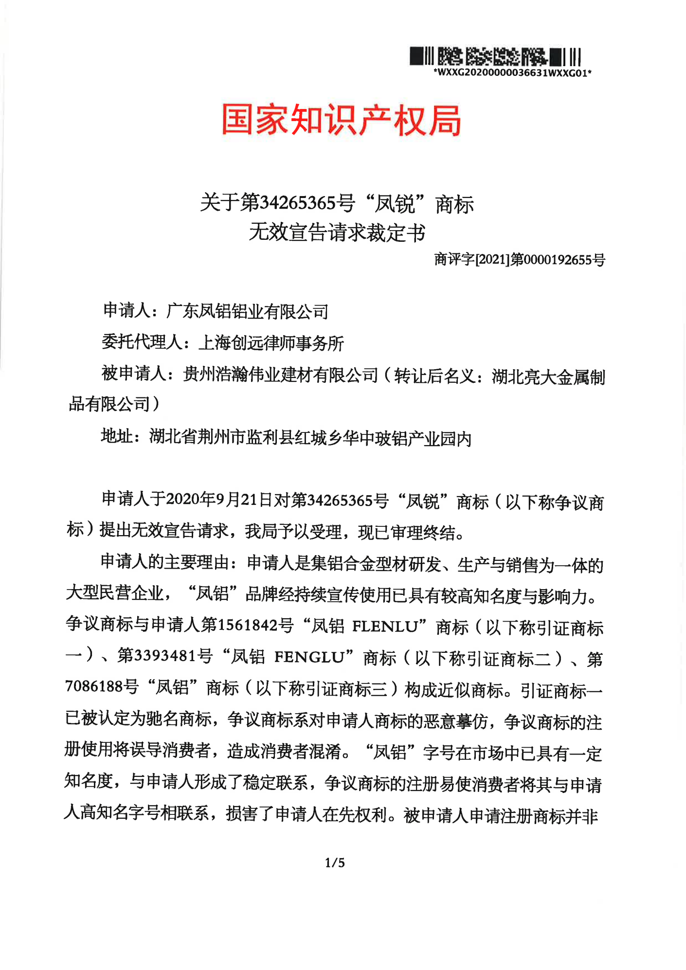 铜仁辉知队 | 国家知识产权局:“凤锐”商标无效
