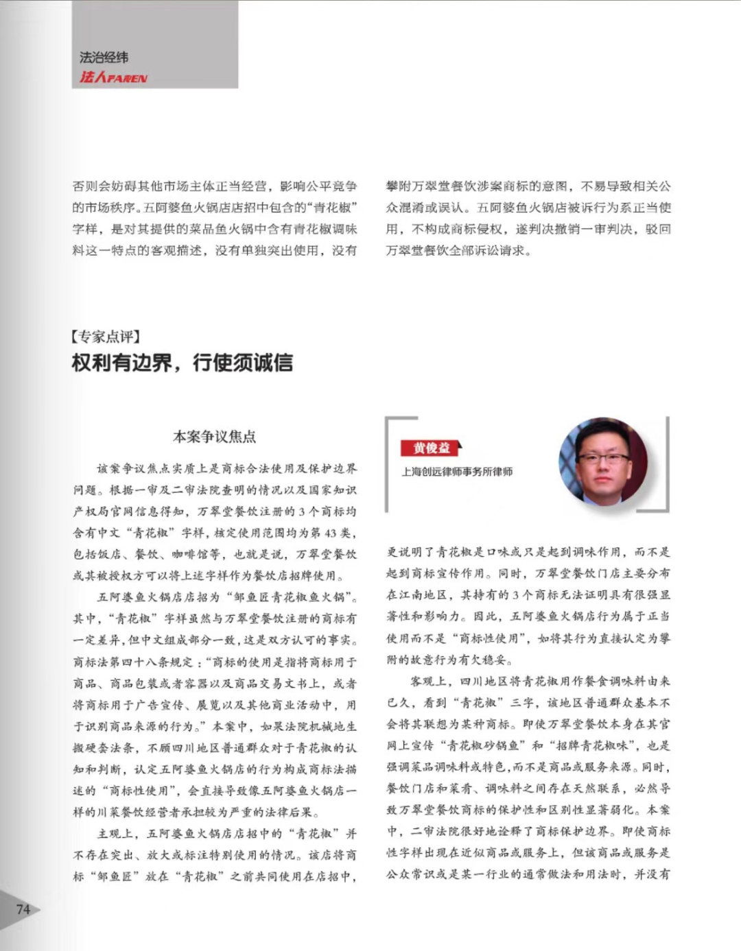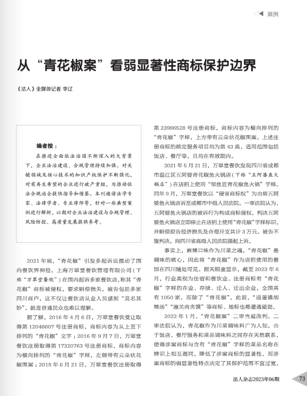 铜仁辉知简讯 | 辉知队黄俊益律师应“法治日报”旗下杂志邀请,就“青花椒”案发表专家点评